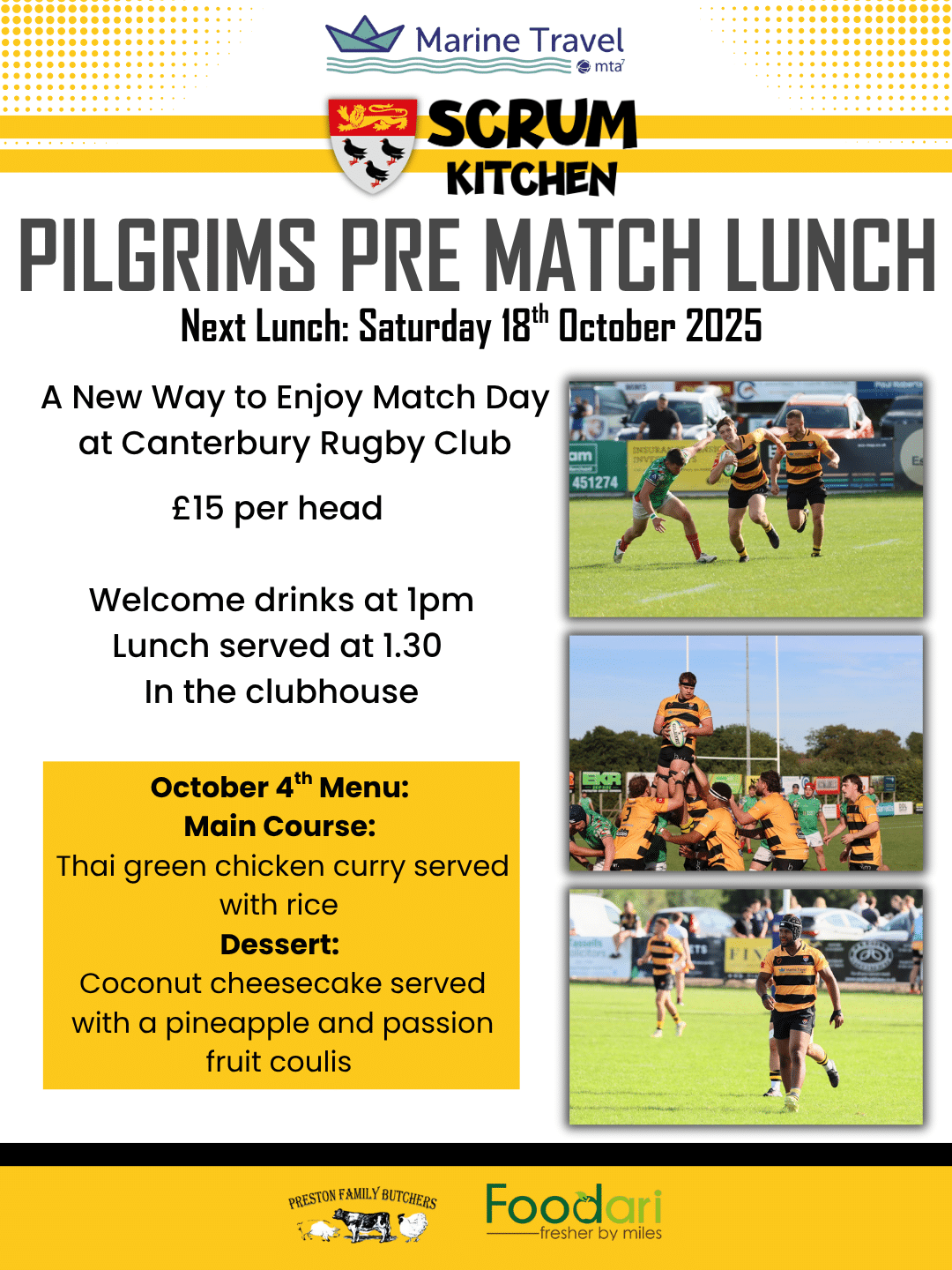 Canterbury Rugby Club’s Pilgrims Pre Match Lunch is fast becoming a fan favourite, and it’s easy to see why. With delicious food, great company, and a buzzing clubhouse atmosphere, it’s a fresh way to kick off match day in style.